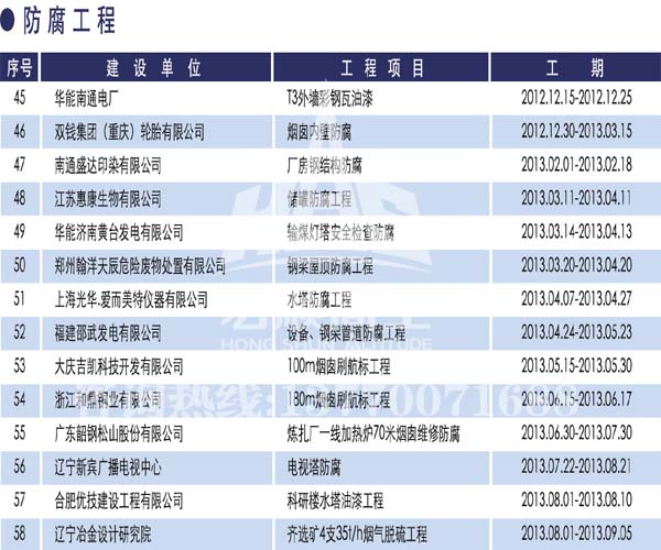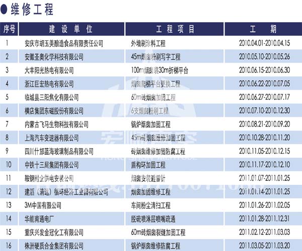 宏順建設(shè)工程有限公司是國(guó)家批準(zhǔn)成立的專業(yè)高空作業(yè)企業(yè):承攬過(guò)(國(guó)內(nèi).國(guó)外)煙囪新建、煙囪防腐、磚煙囪新建、煙囪改造、煙囪維修、煙囪脫硫防腐、煙囪拆除加高、煙囪滑膜等高空作業(yè)工程。具有“不搭腳手架 、 不需要停產(chǎn)”施工特點(diǎn)。